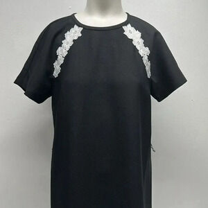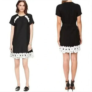Kate Spade Dress Floral Lace Trim Crepe Short Sleeve Mini Black White Size 4