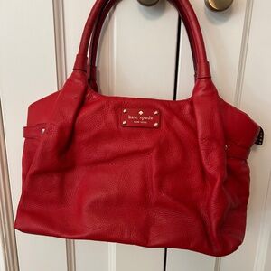 Excellent condition Kate Spade Dumpling Satchel. Made of leather, this stylish bag has a solid tomato exterior, zip closure, and black and white lining.