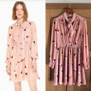 Kate Spade Dusk Buds Mix Print Pink Mini Dress Tie Neck Women’s size Large
