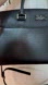 Sophisticated black leather satchel with dual top handles. Features a detachable cross body strap. Perfect for versatile styling.
