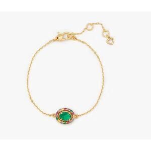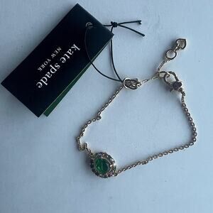 Kate Spade Elegant Gold Tone Chain Emerald Green Crystal Bracelet