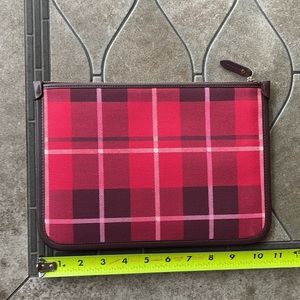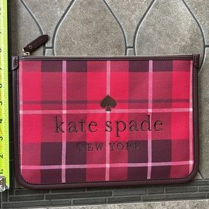 Kate Spade Ella Plaid Bright Rose Large Zip Pouch Clutch