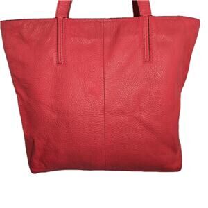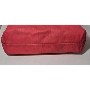 * Crafted from pebbled leather with gold-plated hardware accents, this tote features a trapezoid shape with a zip closure and double handles in matching hot rose color.