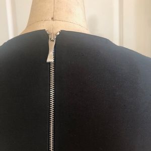 Satin fit and flare dress. Straight seeming smoothly cinches the waistline of a structured silky-soft dress enriched by a satin finish that enhances all skin tones. This is the perfect little black cocktail dress, complete with side pockets! NWOT is is 89% polyester, 11% silk. Bust 35", waist 29", neck to hem 35 1/1".