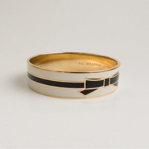 Kate Spade New York Enamel All Wrapped Up Bangle Black White Enamel Gold Tone 12k Gold Plated.