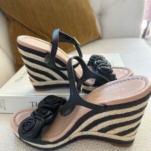 Kate Spade Espadrilles Wedge Sandals Black and White Size 6.5