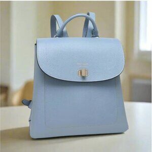 Kate Spade Essential Turnlock Flap Backpack Medium Blue Leather Medium Pebbled