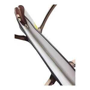 A very classic and feminine satchel with interior pockets and zip closure. Material is saffino double face leather