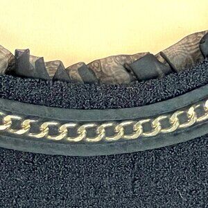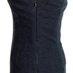 This Kate Spade dress absolutely oozes class. It features a black bouclé wool blend fabric, chain trim accents, a round neckline with chiffon ruffle detailing, and a sleeveless design. Perfectly tailored for an effortlessly elegant look.