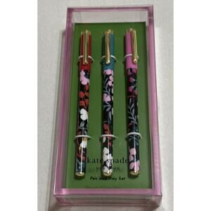 Kate Spade Fall Floral Fine Tip Pen Set of 3 in Pink Acrylic Tray New Sealed Pk