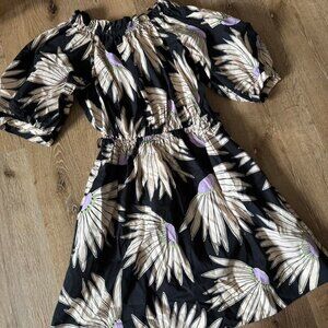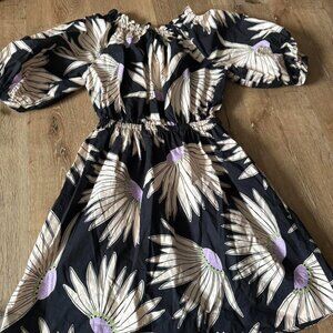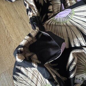 Kate Spade Falling Flowers Black Purple and Cream mini Dress with pockets sz XS