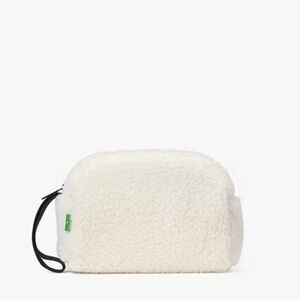 Kate Spade Faux Shearling Travel Pouch Cosmetic Case Wristlet Cream White Zip