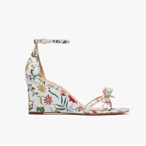 Kate Spade Flamenco Wedges White Floral Wedding Guest Summer Resort Size 6 NIB