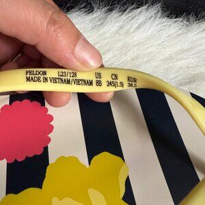 Kate Spade Flip Flops Sz 8 Yellow & Floral Print Feldon Nautical Beach