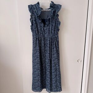 Kate Spade Flora Lace Ruffle Dress in Antique Blue
