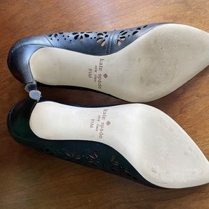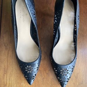 Size 8.5 Kate Spade Floral Cut Out Black Classic Pumps, worn only once. Comfortable, classic with a stylish twist!