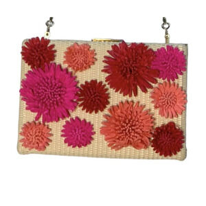 This Kate Spade New York Emanuelle Montigo Avenue Clutch Shoulder Bag is a versatile and stylish accessory for any occasion. With a colorful raffia flowers, it's perfect for spring and summer parties. Limited Edition. Gold chain shoulder strap can be tucked inside for clutch carry.