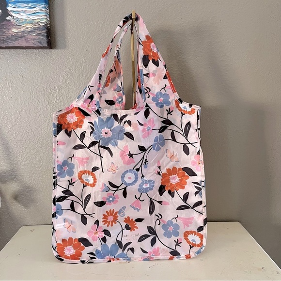Kate Spade tote, reusable shopping bag, floral tote, eco friendly bag, foldable tote, Kate Spade shopper, casual travel bag, lightweight market tote, floral beach bag