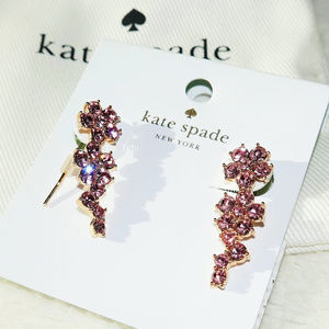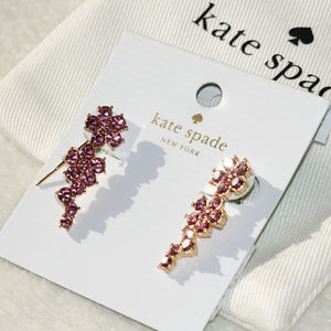 Kate Spade flower ear pins/earrings/crawlers. Shiny gold tone metal. Light pink glass stones. Stainless steel posts.
