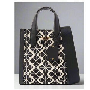 Kate Spade Flower Jacquard Manhattan Mini Tote Blue Leather Crossbody Bag