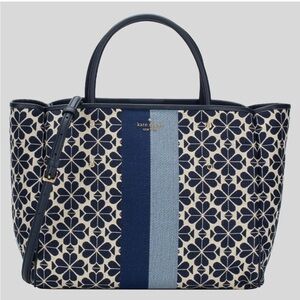 Kate Spade Flower Jacquard Stripe Everything Medium Tote blue and navy