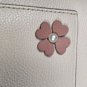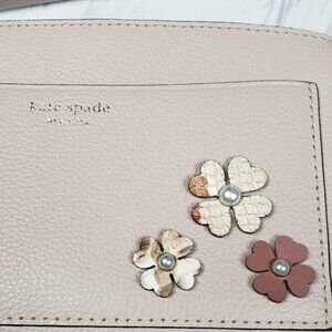 Add a romantic, feminine touch to your wardrobe with this charming Kate Spade Flower Pearl Cutout Clutch. Crafted in durable saffiano leather with floral cutouts and pearl accents, it’s the perfect wristlet for weddings, events, or everyday elegance.