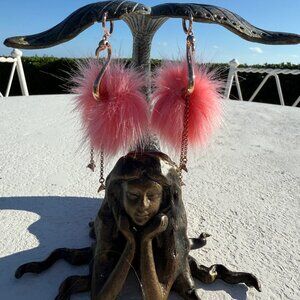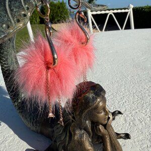 Kate Spade New York By the Pool Flamingo Statement earrings. Rose Gold plated metal with czech stone and faux fur. Leverback closure with adorable dangling details.