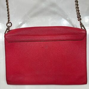 Gorgeous bright tomato red color with woven leather detailing