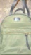 Elegant forest green backpack with front zip pocket. Features adjustable straps and gold-tone hardware.