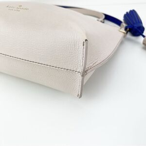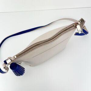 KATE SPADE Off White Blue Pebbled Leather Zip Fringe