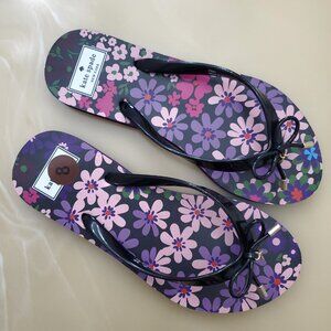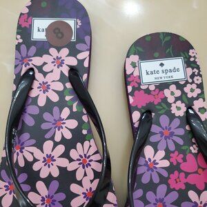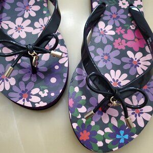 Kate Spade Foxy Dark Floral Bow Women's Flip Flop Thong Sandal Size 8