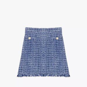 ♠️ Kate Spade Gabrielle Tweed Skirt, Pearl Accent French Navy Cosmic Blue