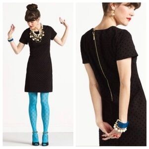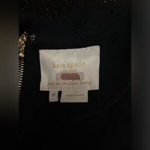 Elevate your wardrobe with this chic Kate Spade black polka dot dress. Designed for a sophisticated yet playful look, this dress features a classic A-line silhouette that flatters any figure. The subtle polka dot pattern adds a touch of whimsy, while the gold-tone exposed zipper at the back provides a stylish accent. Perfect for both daytime and evening events, this dress can easily be dressed up or down with the right accessories. Made from high-quality materials, it ensures comfort and durability. Pair it with bold tights and statement jewelry for a fashion-forward ensemble.