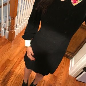 White sequins sparkle on the Peter Pan collar of this long-sleeved black dress, creating a look that's conservative but not the least bit boring.
