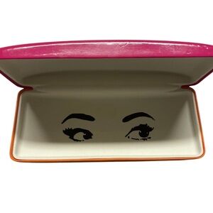 Kate Spade Pink/Orange Eyeglass Hard Clamshell Case Eyes Design Inside.