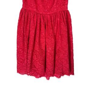 Add a touch of floral elegance to your wardrobe with this beautiful Kate Spade dress! Featuring a unique geranium coral floral lace design, this dress is perfect for any special occasion or a stylish day out. The sleeveless design and hi-lo raw hem add a modern twist to this classic piece.