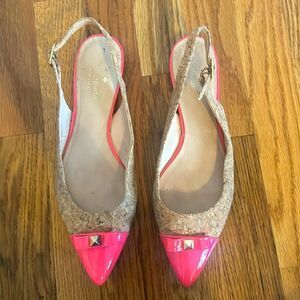Kate Spade Ginny Flat Slingbacks Shoes Natural Cork Hot Pink size 7