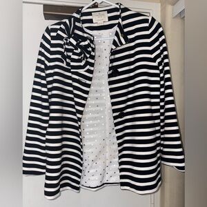 KATE SPADE NEW YORK BLACK AND WHITE STRIPED COAT BLAZER JACKET