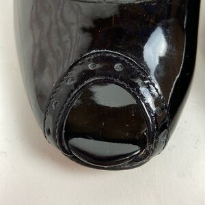 Excellent Condition Kate Spade Black Giselle Oxford Patent Leather Peep Toe Heels