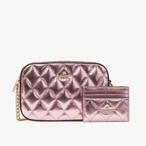 Kate Spade Glimmer Quilted Metallic Box Crossbody Set NWT