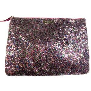 Kate Spade Glitter Clutch Pink Sparkle Cosmetic Pouch Top Zip Evening Party