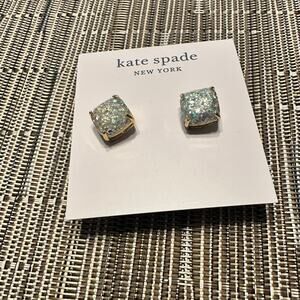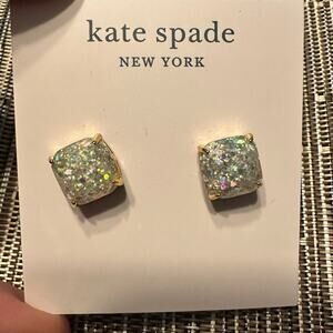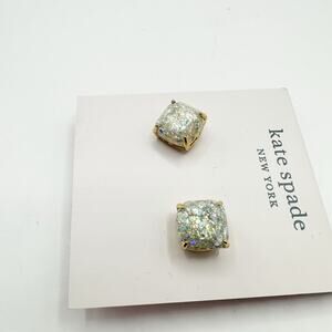 Kate Spade Glitter Stud Earring Mini Square Silver Opal Designer Jewelry Studs