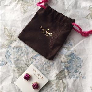 Genuine Kate Spade NY glitterbug stud earrings. Hot pink laquered glitter squares on gold-plated mount. NWT, comes with bag. Never worn! 💗💎💫💖🎀✨💓💝 Makes a great gift