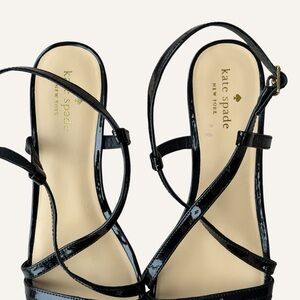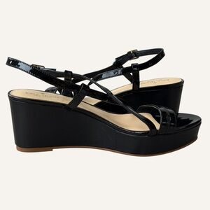 Kate Spade Glossy Black Strappy Wedge Patent Leather Sandals Size 8