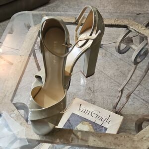 Chic Kate Spade Leather Platform olive heels with a glossy finish, size 6.5. Features a stylish ankle strap. Perfect for elevating any outfit. PLEASE note pic of small imperfection on right toe strap. Overall Excellent condition, measurements in pics, smoke free home, ships next day. Over 2,500 Poshmark Sales. Bundle and Save!