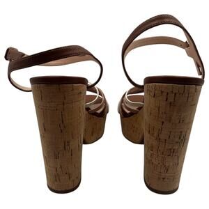 Kate Spade Glow Leather Dressy Block Heels Platform Sandals Multi Toast 9.5M