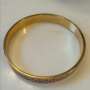 Vintage Kate Spade Go With the Flow idiom bangle bracelet, EUC. Lavender enamel and 14 k gold plated bracelet with Go With the Flow monogrammed inside. 3/8” wide, 2 3/4 x 2 3/4” diameter.