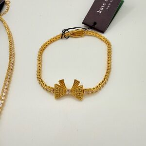 Kate Spade Gold Bow Necklace and Bracelet Set cz Crystal gift office career