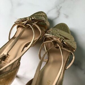 Kate Spade Gold Bow Strappy Leather Sandal 10