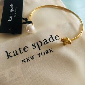 Chic gold bracelet by Kate Spade. Features bold red and green details. Ideal for adding flair.